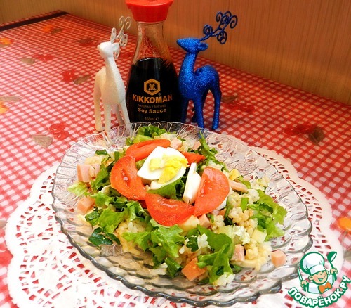 Сытный и одновременно лёгкий салат, довольно быстрый в приготовлении! Не отнимет много сил перед праздничным ужином. А соевый соус "Kikkoman" делает вкус салата изысканным. Попробуйте сами!