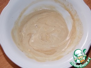 Смешать томатную пасту с растительным маслом, сметаной и 1 зубчиком мелко нарезанного чеснока. Добавить по щепотке соли и перца. -