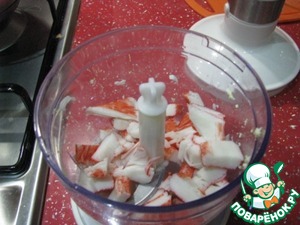 • Крабовые палочки измельчить в процессоре или мелко нарезать.