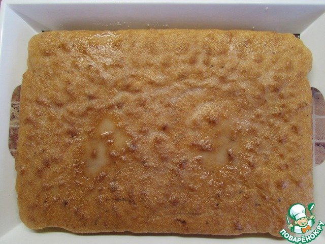 Противень 30х40 см смазать маслом и вылить тесто. Разровнять. Я привыкла всё печь на бумаге для выпечки, поэтому тесто тоже вылила на бумагу для выпечки.