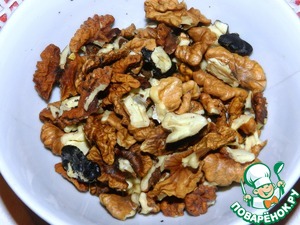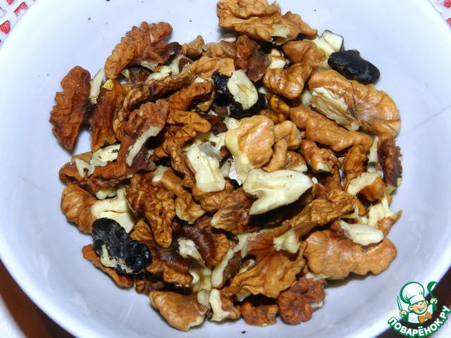 Интересная, не тривиальная закусочка. Очень интересное сочетание с грецкими орехами. Вкусно!