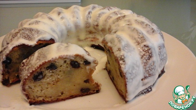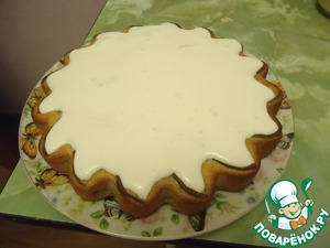 Пока пирог в духовке, приготовить крем: сметану взбить с сахарной пудрой и щепоткой ванилина. Крем поставить в холодильник. После того, как пирог остынет, украсить кремом. Приятного аппетита!