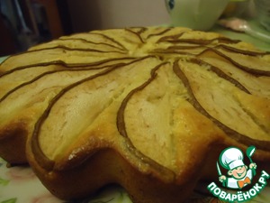 Соединить яйца с творогом, добавить соду, гашеную уксусом, муку и ванилин, все тщательно перемешать. Бананы измельчит блендером до состояния пюре, добавить к тесту и перемешать. Вылить тесто в форму, украсить дольками груши. Выпекать при t 180 градусов 30-40 минут.
