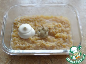 В готовую чечевицу добавить майонез и горчицу;