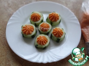 С помощью кондитерской насадки, фаршируем огурцы;