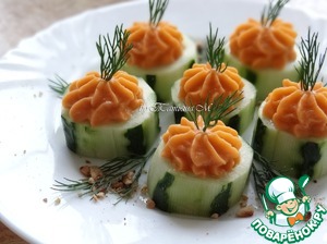 Закуска из огурца, фаршированного чечевицей