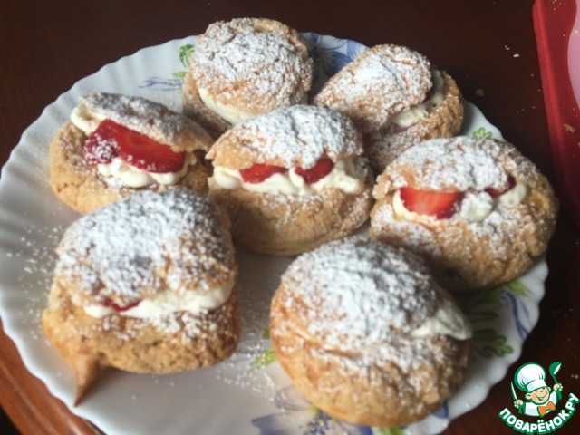 П. С. В оригинале вместо курда пирожное заполнено конфитюром из экзотических фруктов, но можете заполнить вашим любимым конфитюром или, как я, курдом, ссылку на рецепт которого я дам ниже. -