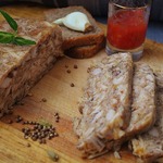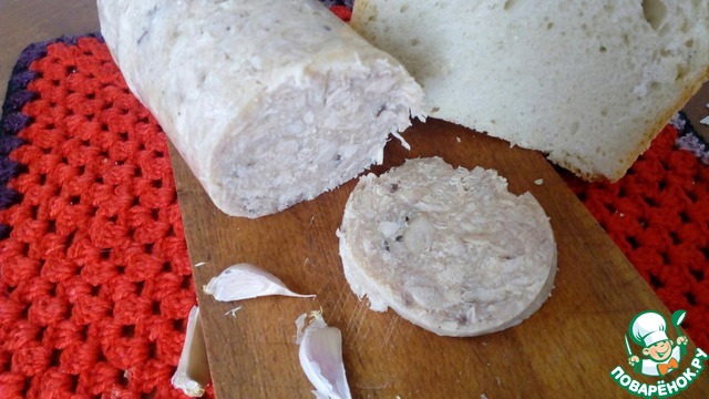 [+5]Формировала всё в срезанной пластиковой бутылке, чтобы, потом удобно было нарезать на бутерброды. Мой муж, правда, на дух, не переносит куркуму, потому, для цвета, я добавила ложечку томатной пасты. И, как мне кажется, я слишком мелко, раздербанила мяско. Но, даже не смотря на эту мою ошибку, закуска получилась очень и очень достойной!