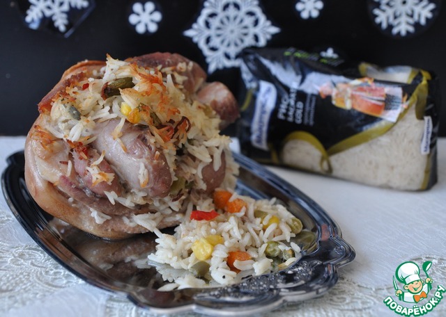 Свиная рулька, фаршированная рисом и овощами