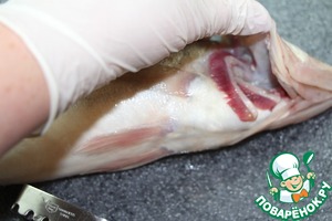 Выпотрошить рыбу, удалить реберные кости, рыбу промыть под проточной водой.