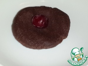 Отщипывайте от получившегося "теста" небольшие кусочки, раскатайте из них "лепешечку", поместите в центр 1-2 вишни (у меня замороженная вишня)