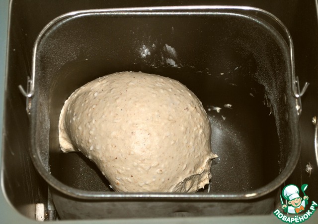 Смешиваем закваску с молоком и загружаем ее в ХП. Добавляем яйцо, размягченное масло, сахар, соль, горчицу, сыр, молотые орехи. Взвешиваем муку, но всю сразу не сыпем, т. к. ее может уйти меньше или больше. Включаем ХП на программу замес, у меня она 10 мин. месит, 20 мин. отдыхает, следующие 20 мин. месит. Выключаю ХП. Дать тесту постоять 2-3 часа до увеличения в 2 раза.