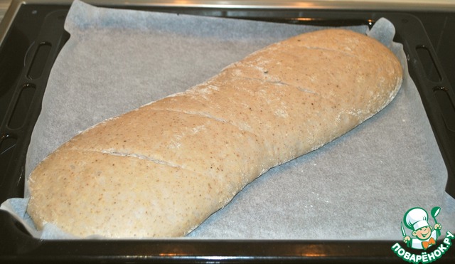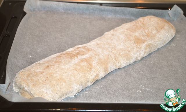 4. Укладываем батон швом вниз на противень застеленный пергаментом.