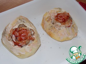 Вырезать серединку, выложить в смазанную маслом форму, посолить и поперчить слегка.