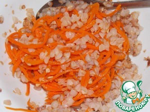 • Добавить к гречке морковь по - корейски, перемешать, немного посолить.