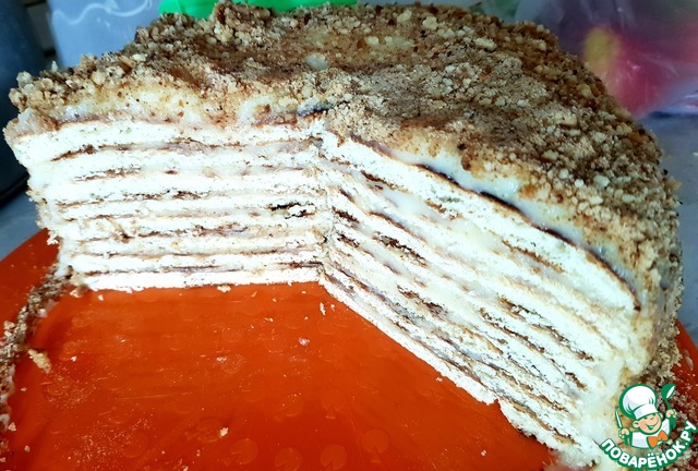 Каждый корж смазываем обильно кремом оставляем пропитываться на несколько часов (я делаю торт с вечера, за ночь он отлично пропитывается).
