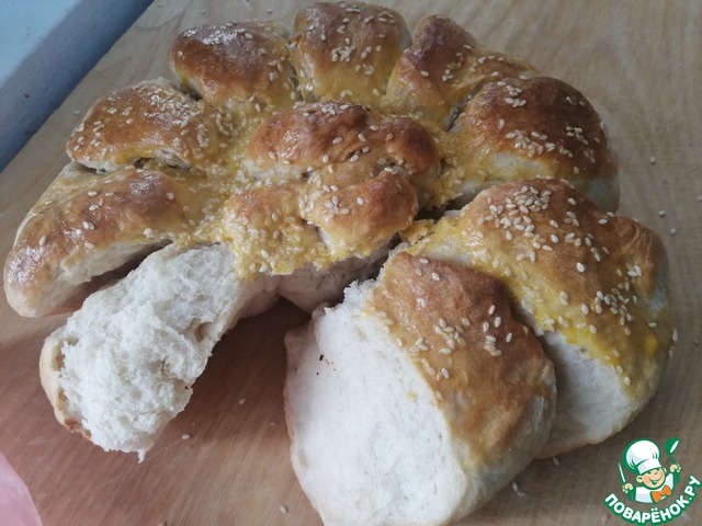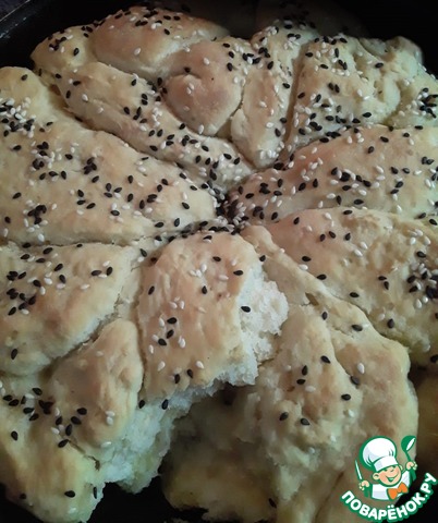 Единственное-пришлось изделие помазать яйцом, иначе кунжут не держится.