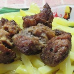 Мясо нарезать кусочками (приблизительно 3х3 см, можно чуть крупнее)
