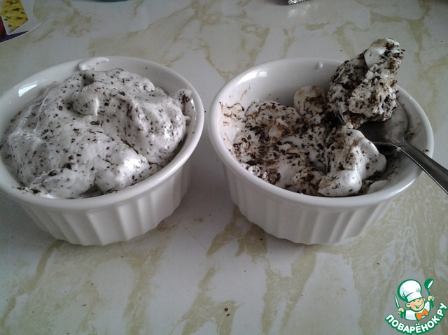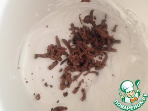 Взбиваем белки с сахаром до высоких пиков добавляем шоколад протертый на терке, либо 2 ч. л какао (можно сделать без какао и шоколада). Аккуратно перемешиваем.