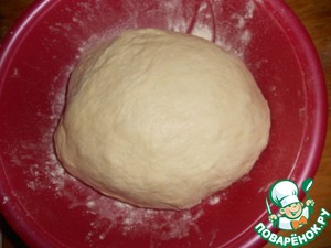 По окончании замеса вынуть тесто из ХП и выложить в чашу, присыпанную мукой.