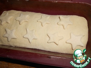 Для этого выложить ингредиенты для теста в следующей последовательности- вода, мука, масло сливочное, сахар, соль, дрожжи.