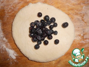 Выложить на кружочки теста по 2 ч. л. свежемороженной черники. -