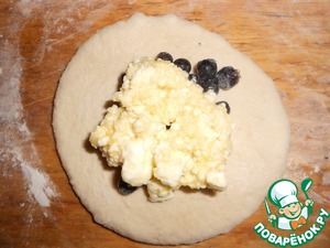 Сверху выложить по 2-3 ч. л. творожной начинки.