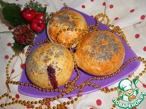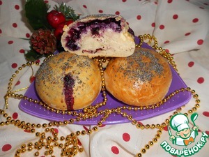Вкусные булочки с сюрпризом - с творожно-черничной начинкой. Такое угощение понравится и огненной обезьяне, и вашим гостям.