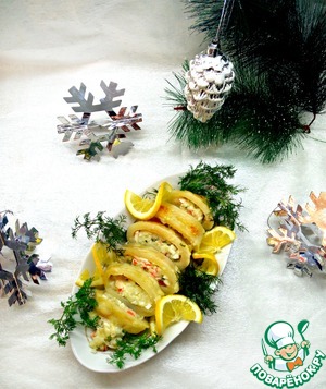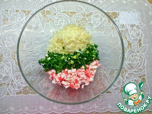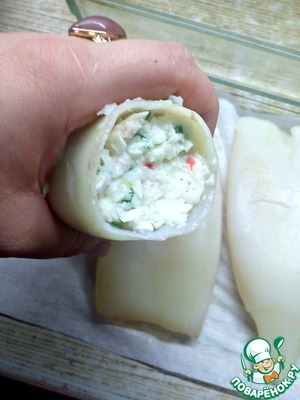 Рецепт «Кальмары, фаршированные крабовым мясом и сыром»: