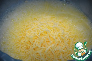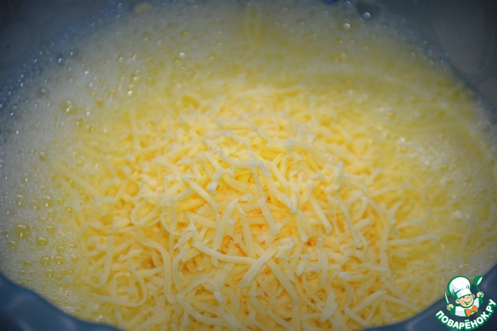 Добавляем тертый сыр, перемешиваем