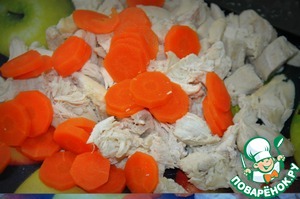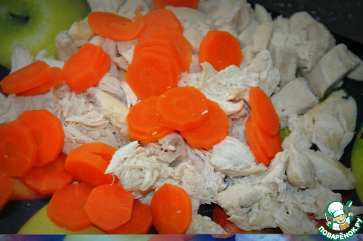 После режем нашу грудку произвольно, морковь кружками