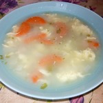 И выливаем нашу яйчную смесь в бульон тонкой струйкой перемешивая..