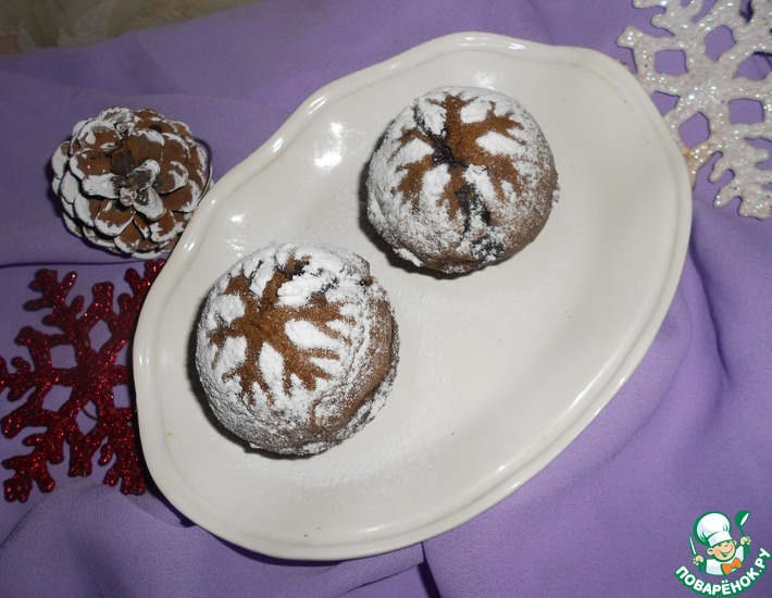 Сверху присыпать сахарной пудрой (используя трафарет, можно сделать снежинки).