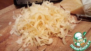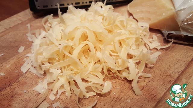 Приправим яйцо немного бальзамиком и присыпем тёртым сыром. У меня гранд, как пармезан.