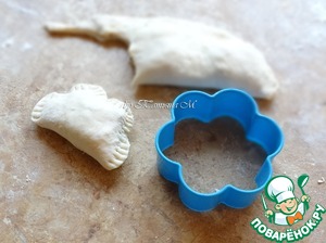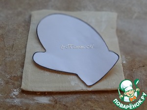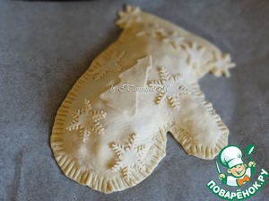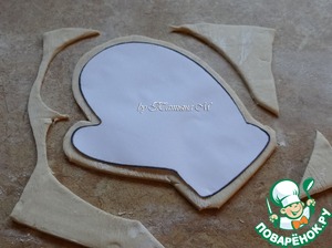 Из теста вырезать 2 рукавички, прибавляя к краю припуск на защипы