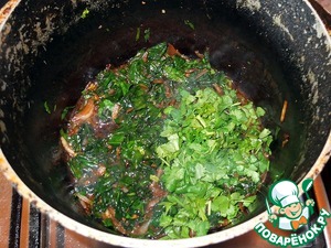 Ну а как подавать это уже личное, домашние предпочли посуше, присыпав остатками кинзы и с свежей лепешкой. -
