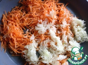 В небольшом количестве растительного масла обжарить мелко порезанный лук и натертую морковь