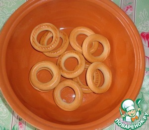 Понадобятся маленькие сушки, которые также высыпаем в глубокую тарелку.
