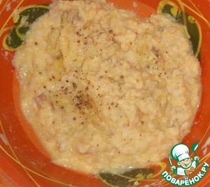 Добавить распаренные рисовые хлопья. Перемешать.