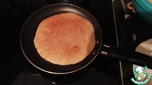 Шаг 4: Разогреваем сковороду, смазываем маслом и жарим. Советую наливать теста побольше, чтоб блины были не тоненькие. Тогда они будут нежные и воздушные. Не забываем их смазывать маслицем.