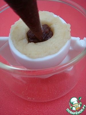 С помощью кондитерского мешка выдавить начинку в получившееся углубление.