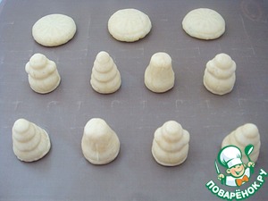 Но я решила сделать новогодний вариант пирожных. Для этого я использовала специальные формочки. Четвертую часть теста раскатать в пласт толщиной 2-3 мм и вырезать кружочки.