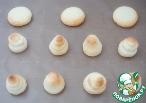 Выложить пирожные на застеленный бумагой для выпечки противень.