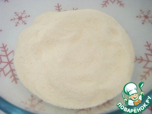 Всыпать в миску манную крупу, 25 г муки и сухое молоко. Манную крупу я использовала ТМ Мистраль. Она такая меленькая, нежная и слегка сладковатая. Просто идеально подходит для приготовления пирожных.