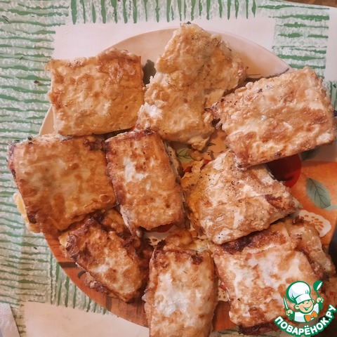 Обильно обмакиваем гренки в яичной смеси.