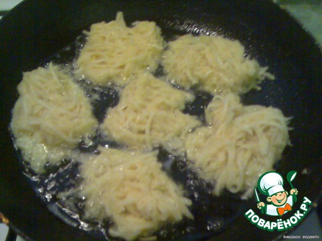 • Жарить на раскалeнной сковороде до золотистого цвета с двух сторон.
