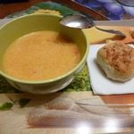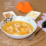 Из изменений: я тыкву о остовом копч.курицы закинула. Плавленный сырок натерла, но он тоже до конца не разошелся. Супец отличный, на очереди оладьи. Не такой уж и страшный зверь эта ваша матушка-тыква.