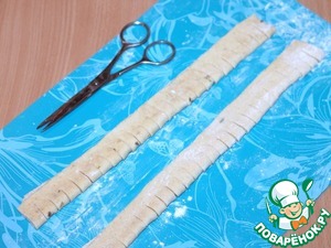 Из каждой части раскатываем две полоски размером 8*30.