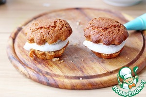 На нижнюю часть выложить часть крема, оставляя центр пустым.