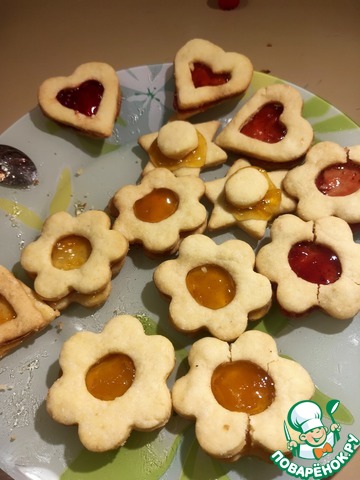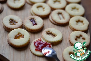 Когда печенье остынет, начинается самое интересное! Зовите детей и обязательно мужа! Помощь будет нужна. Будем печенье собирать с помощью варенья. Желательно ярких цветов! У меня варенье из красной смородины и желтое апельсиновое.